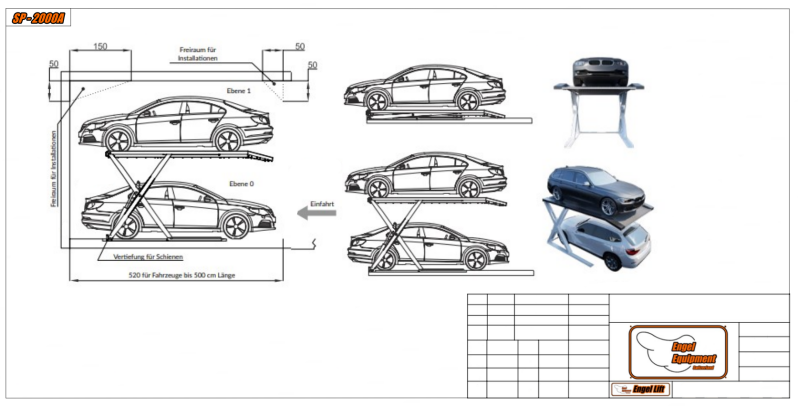 Diese Parkhebebühne steht auch sehr gut in jeder Garage, um der Parking Fläche zum verdoppeln, um jede Fahrzeug genügend Platz zu verleihen für ein bequeme Aus und einstieg in Fahrzeug., wird mit ein separate Bedienungpult geliefert.